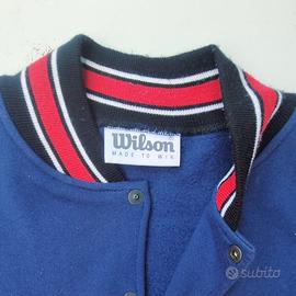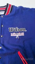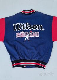 Giacca varsity Wilson originale, anni ’90, colori bluette/rosa scuro.