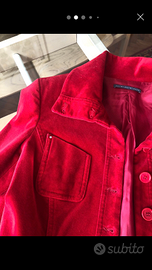 Giacca Alysi in velluto liscio rosso taglia 44, poca vestibilità (40/42). Lunghezza cm 55, torace cm 45x2. Ottimo usato. Non accetto resi