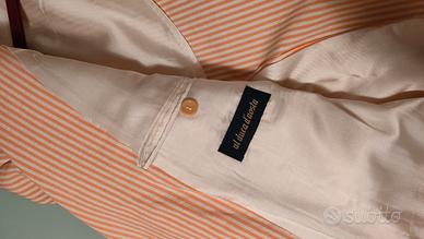Giacca cotone Blazer in cotone stretch. Tasca a filo sul lato e due tasche a pattina sul davanti. Fantasia a righe sottili panna/rosa caldo Chiusura monopetto con bottoni. in ottime condizioni. marca Duca d'Aosta Mestre