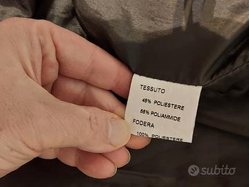 Giacca a vento leggera, verde militare , donna, tg. it 46/L. in poliestere poliammide. 4 tasche anteriori, chiusura anteriore con bottoni. coulisse interna in vita. ricamo con brillantini aulla manica sinistra. un paio di brillantini sono saltati via, x il resto è perfetta. euro 50, lievemente trattabili.