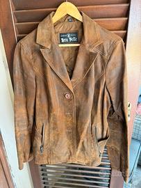 Giacca donna , scamosciata vera pelle foderata per tutte le stagioni, colore ruggine sfumato tg 48 vestbilita slim