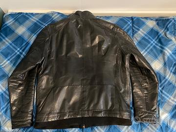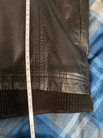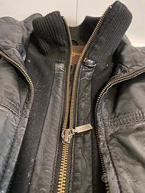 Modello stile bomber con colletto interno in maglia, zip frontale e tasche laterali. Pelle morbida e ben tenuta, indossata ma in buono stato generale.
