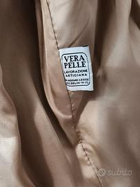 Splendida giacca da donna in vera pelle 100% acquistata in negozio specializzato di cappotti e giacche di qualità al prezzo di 299 euro. Utilizzata poche volte e riposta sempre con cura con telo di copertura. Colore marrone, nessuna screpolatura o rottura della pelle in ogni parte segno della bontà molto elevata della vera pelle, bottoni in metallo integri. Colore marrone chiaro, taglia XL ma veste un pò di meno quindi equivale a una L. Misure: lunghezza manica 60 cm - larghezza spalle 42 cm - altezza davanti 52 cm - altezza dietro 51 cm. Modello con davanti taglio arrotondato, particolare che alza il livello rispetto ai capi standard che si trovano in giro. Prezzo 79 euro compresa spedizione. (guarda le altre mie inserzioni potresti trovare qualche oggetto che ti serve e risparmiare sulle spese di spedizione mettendo tutto nello stesso pacco)