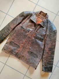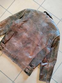 Giacca in vera pelle vintage stile distressed leather, taglia 54, interno fodera pesante fantasia