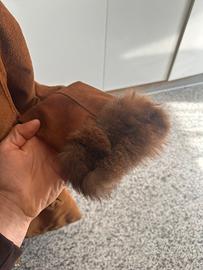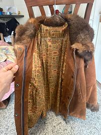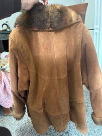 Giacca in vera pelle scamosciata color marrone con collo e polsini in pelliccia, molto calda e perfetta per la stagione autunno/inverno.