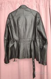 Bellissima giacca in vera pelle nera di alta qualità del marchio Nice Girls. Un capo dal carattere deciso, perfetto per un look vintage o da motociclista urbana. Modello "Field Jacket" a 4 tasche frontali Colletto alla coreana con cinturino a fibbia, chiusura centrale con zip e patta protettiva, polsini con cerniera regolabile. Vestibilità: Slim fit, sagomata in vita grazie alla cintura inclusa che valorizza la silhouette. Condizioni: Ottime condizioni vintage (la pelle è morbida e presenta una bellissima patina naturale) Taglia 42 Giacca originale anni 90
