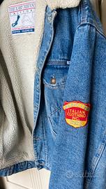 Giacca vintage jeans esterno e pelliccia bianca interna.