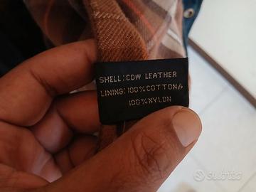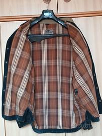 Giacca Diesel anni 90 con etichetta "Comfort Range" e "SUB-ZERO TO MODERATE" che indica un capo adatto a climi freddi o temperati. La giacca è di taglia XL, il materiale esterno è in pelle nera scamosciata di mucca, la fodera interna 100% in cotone e 100% in nylon è con motivo scozzese a quadri (tartan) marrone ed è una caratteristica distintiva. Il modello è con chiusura a bottoni sul davanti e tasche applicate sul petto e ai lati. Le cuciture sono visibili sul retro e il colletto è a camicia. I dettagli visibili, come l'etichetta sul taschino e i bottoni con la scritta "DIESEL CO.", sono elementi caratteristici del marchio. Questo capo è versatile e può essere abbinato a look casual, come pantaloni di jeans, o a un total black.