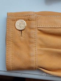 Giacca vintage donna in pelle scamosciata originale Burberrys. Taglia M/L larghezza spalle 48 cm, lunghezza 78 cm.
