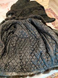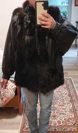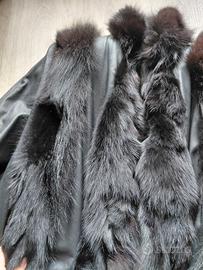 Giaccone vintage da donna in pelle nera, con inserti in pelliccia di visone.