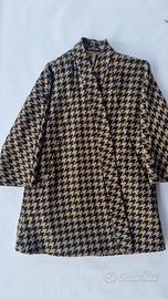 Giacca donna vintage taglia 42, marca LaFleur, motivo pied de poule nero/beige. Linea dritta, senza bottoni (modello aperto).