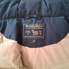Giaccone Woolrich originale taglia 16 anni per ragazzi/e, 4 tasche, colore blu scuro, con cappuccio e collo di pelo removibile, usato ma ancora in buone condizioni. presente piccola abrasione sotto una tasca come da foto. Prezzo non trattabile.