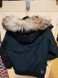 marca woolrich molto caldo, tenuto benissimo. sopratutto la sua pelliccia che si puo anche staccare. per quando si deve lavare la giacca, anche credo si lavi poco. taglia xs ma vesta anche una S. piu da uomo