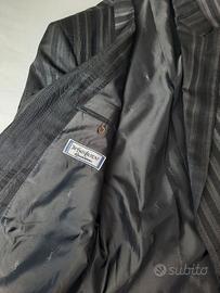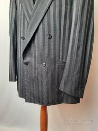 Bellissimo il pattern a righe verticali sulle tonalità del grigio in uno splendido mix di lana e seta. Qualità del tessuto impareggiabile, che solo Yves Saint Laurent e altri pochi riescono ad ottenere.