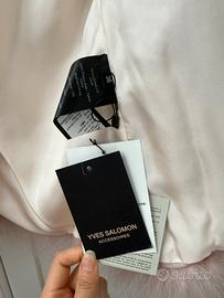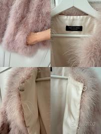 Splendida giacca Yves Salomon Accessoires in piume naturali, color rosa pastello. Condizioni: Nuova, mai indossata. Certificato di autenticità e cartellini originali inclusi (staccati in boutique ma conservati). Prezzo originale: 520€. • Taglia: 36 FR (Veste S) • Materiale: 100% piume naturali (tacchino), morbidissima e leggera • Fodera: 100% Seta • Dettagli: Maniche a 3/4, chiusura con gancetti a scomparsa e tasche. • Stato: Perfetto, pari al nuovo. Prezzo trattabile. Consegna a mano a Milano o spedizione.