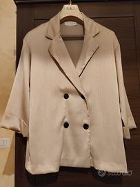 Giacca Zara collezione primavera/estate 2025 colore oro tessuto plissettato taglia xs ma veste larga comoda per una taglia 46/48