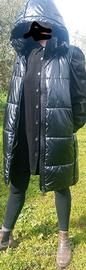 giacca smanicata color nero con cappuccio rimovibile e doppia zip per aprirla sopra e sotto