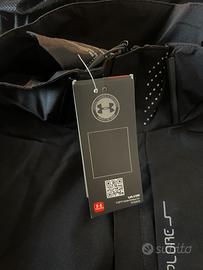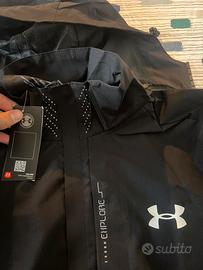 giacca antivento nera tecnica della under armour , con cappuccio rimuovibile con zip , perfetta per andare in moto anche in inverno e comoda anche per uscire