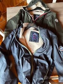 2 giacche Lonsdale originali con cappuccio e interno in pelo bianco taglia L. Verde con cuciture rosse e blu con cuciture verdi 40€ l'una