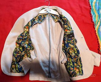 - Giacca estiva di lino, bianca con interni floreali - Celio taglia 46. Questa giacca è perfetta per le stagioni calde grazie al suo materiale fresco che la rende anche molto leggera da portare.