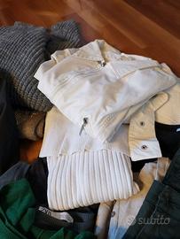 Vendo in stock, causa cambio taglia, (purtroppo) una decina di giacche usate in buone e ottime condizioni. Sono taglia 42 e 44. Nello stock c'è anche un completo. verde molto bello., un giubbetto in ecopelle usato 2 volte, giubbetto in jeans corto modaiolo. Consegna solo a mano zona Udine o limitrofi. Possono andare bene a chì vuole rifarsi il guardaroba spendendo veramente poco. Ovviamente sono usate, ma pulite. Vengono consegnate tutte assieme, no vendta singola. Regalo nello stock, maglie usate, lavate e pulite.