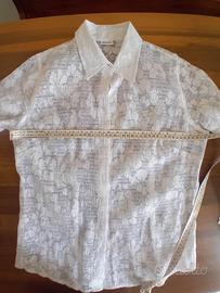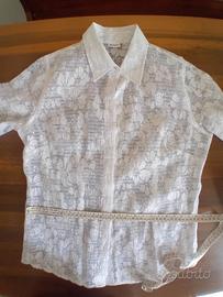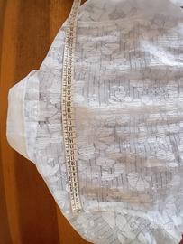 Giacchetta estiva in voile operato bianco con fiori in trasparenza. Manica 3/4 risvoltabile. Mancanza di etichetta con taglia, composizione fibre ed istruzioni di lavaggio: si notava in trasparenza ed è stata tagliata. Lavare Max 40 gradi con programma capi delicati o lana, centrifuga leggera o esclusa. Se stesa bene o non centrifugata non occorre stirare, altrimenti utilizzare ferro tiepido. Abbinabile ad abitino corto estivo presente in altro annuncio. Per la taglia fare riferimento alle misure riportate nelle fotografie. Condizioni e colori come da fotografie.