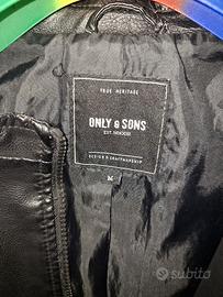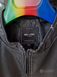 Giacchetta in finta pelle marca Only & Sons colore nero con tasche laterali e chiusura tramite cerniera.