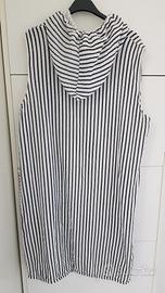giacchetta estiva leggera sotto il ginocchio senza bottoni, con cappuccio legato con corda e tasche laterali, smanicato