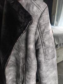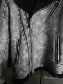 Giacca modello biker in eco-montone (shearling sintetico) color grigio effetto Camouflage vissuto, con interno e colletto in pelliccia sintetica nera. Doppia chiusura se tenerlo over oppure attillato Due tasche Taglia m uomo chiedete misure Nuovo mai indossato, senza cartellino Non ha marca Made in prc #biker #aviator #shearling #streetwear