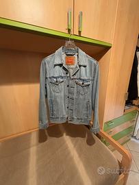 Giacchetto in denim Levi’s taglia S, colore classico blu jeans. Design iconico con colletto, chiusura a bottoni e tasche frontali, perfetto come capo casual e versatile per ogni stagione.