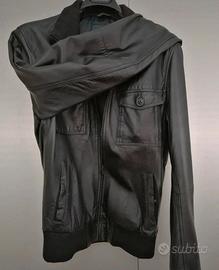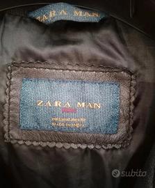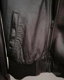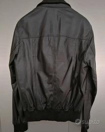 Giacchetto Zara Man young similpelle nero con cannolet su polsi e vita, chiusura lampo e tasche interne.