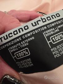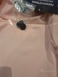 Giacchetto Tucano taglia S colore rosa tenue con due tasche esterne fodera interna cintura in vita regolabile chiusura sul davanti con cerniera e bottoni lunga 69 cm materiale 100% poliestere nuovo con cartellino ottima vestibilità