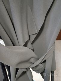 Giacchino di cotone grigio con laccetti per chiudere e un collo molto ampio elegante ma anche per tutti i giorni