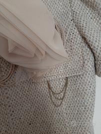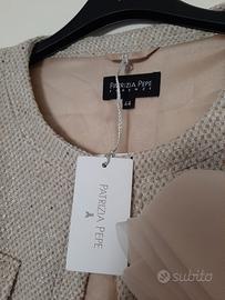 Giacchino/Bolero Beige Originale Patrizia Pepe Tg 44 ma veste anche 42. Spilla removibile. Possibilità di chiudere la giacca con i gancetti, larghezza seno 46 cm. Nuovo con cartellino