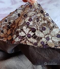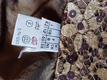 Giacchino coprispalle MaxMara taglia 42 pizzo/pailettes doppio tessuto colore marrone tortora perlato. Vendibile singolarmente e anche in completo con gonna e bustino top steccato o abbinato ad abito tubino dello stesso colore, tutto di Max Mara. Vedi altri annunci del mio armadio.