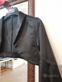 Giacchino corto / scaldacuore nero effetto lucido di Rinascimento. Il colore è bello intenso e ha le maniche a 3/4.