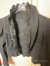Elegante giacchino corto in lana con dettagli in pizzo.