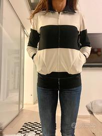 Giacchino modello felpa di Norma Kamali. Nuovo con cartellino. Tessuto molto bello , taglia xs ma veste leggermente abbondante. Colore bianco e nero. Come si vede dalla foto la manica può essere usata sia mettendo il pollice nell'asola, sia risvoltandolo così da portarlo più corto. Può essere usato sia come felpa che come giacchino.