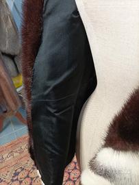 Raffinato Giacchino in Vera Pelliccia Naturale da Donna, tg 44, Come Nuovo, Perfettamente foderato che abbina un Pregiato Visone Khoinoor Bianco e Grigio ad un Morbido e Lucido Visone Scan Brown Marrone Scuro dai Riflessi Color Tiziano. Ampio Collo Doppio Petto e Chiusura sul Davanti con Raffinati Bottoni Gioiello in Strass . N 280