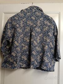 giacchino corto stile kimono colore jeans e beige damascato con tasche laterali.