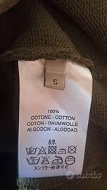Le foto mostrano il capo da diverse angolazioni, compresi i dettagli del tessuto, la marca, la taglia e le istruzioni di lavaggio.