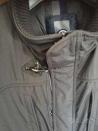 Giaccone uomo 3/4 colore grigio scuro Chiusura con cerniera e bottoni , dippio collo con tessuto a maglia 4 tasche esterne sul davanti ,2 tasche interne coulisse unternoer stingere la vita, tessuto poliestere Misura : lunghezza totale cm. 88 lunghezza manica cm. 67 larghezza spalla cm.50 Taglia 54. Confuzioni OTTIME