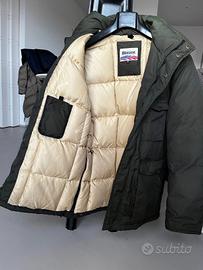 Esterno giaccone 100% nylon/poliammide, fodera 100% poliestere, imbottitura 100% piuma d’oca. Cappuccio assente