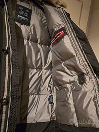 Fantastico giaccone invernale con cappuccio e collo in finta pelliccia staccabile, in ottime condizioni usato pochissimo. Taglia M