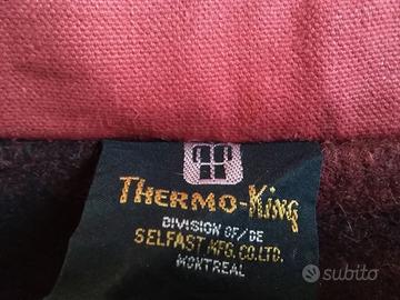 Tipica giaccone double face Thermo-King Montreal non ha altre etichette SI PESUME in lana e cotone taglia approssimativa 54 chiusura con bottoni a pressione in metallo due tasche laterali su entrambi i lati con falda. Sul lato in tela due aperture posteriori mettono in comunicazione i due lati creando un grande tascapane/cacciatora. Poco usato, lavato e non più indossato. Consegnabile anche a genova.