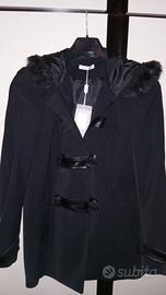 Giaccone Cannella nero con tasche e abbottonatura con alamari.