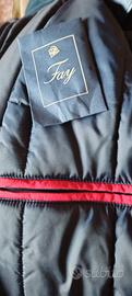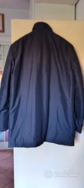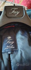 Giaccone da uomo blu Fay, trattamento anti goccia imbottito, collo alto, chiusura con zip e bottoni a scomparsa, gancio iconico sottogola. Tasche diagonali, tasca interna con zip, logo all'interno, taglia XL, marca Fay. Nuovo.