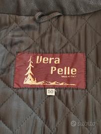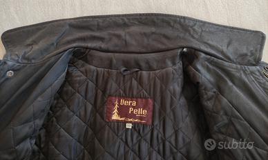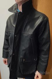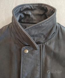 In vera pelle, colore nero, fodera trapuntata colore nero. Quattro tasche esterne, una interna. Chiusura a cerniera (funzionante) e bottoni a pressione. In ottime condizioni, sia all'interno che all'esterno. Tutte le cuciture sono perfette. Non ci sono bordi consumati o parti rovinate e la pelle non ha graffi. I gomiti non hanno segni di usura. Made in Italy.