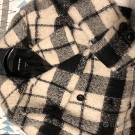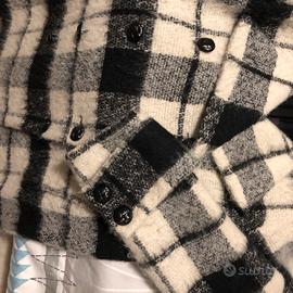 Giaccone scozzere bianco/nero DENNY ROSE taglia 44 a dopoio petto. Redingote sul dietro e sulle maniche.