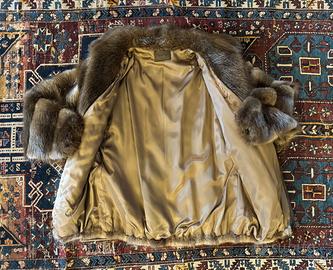 Giaccone unisex di pelliccia di castoro non epilato praticamente non usato con maniche a pipistrello e chiusura con zip. Ha due tasche esterne. Taglia 46/48 L. Misure in dettaglio nell'ultima foto